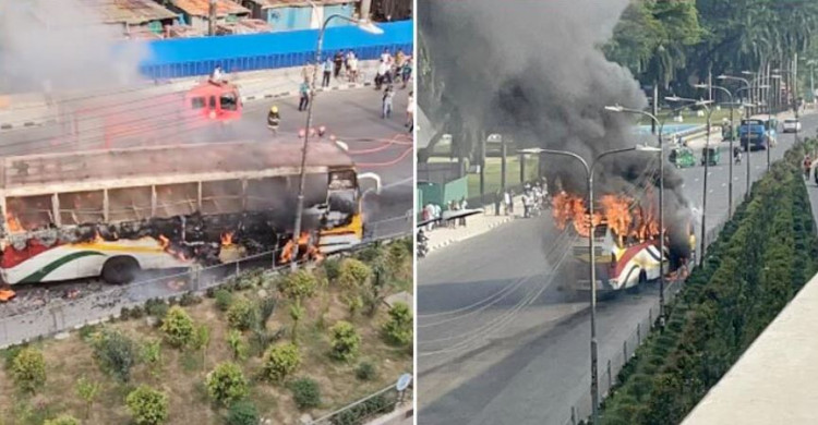বনানীতে যাত্রীবাহী বাসে হঠাৎ আগুন