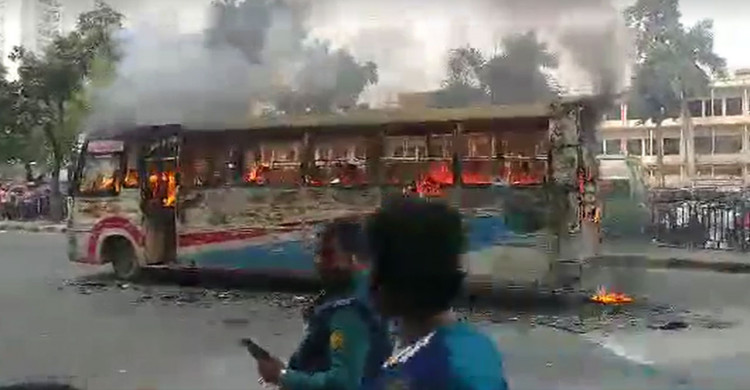 গুলিস্তান জিরো পয়েন্টে বাসে আগুন