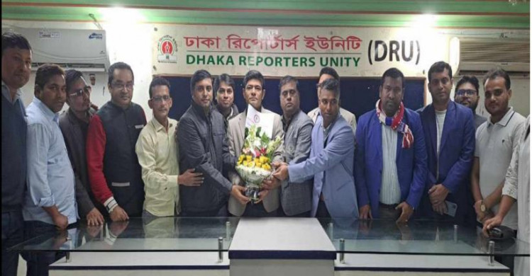 ডিআরইউ'র নতুন কমিটিকে ফুল দিয়ে শুভেচ্ছা জানালো এনজেএফ