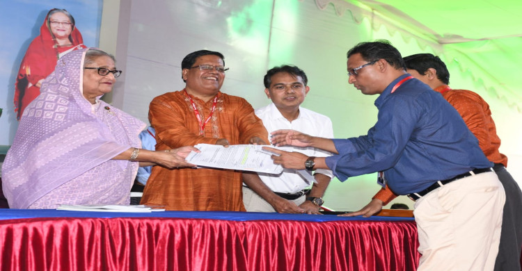প্রধানমন্ত্রীর কাছে সাংবাদিকদের জন্য জমি বরাদ্দের আবেদন হস্তান্তর করলেন সভাপতি ও সেক্রেটারি