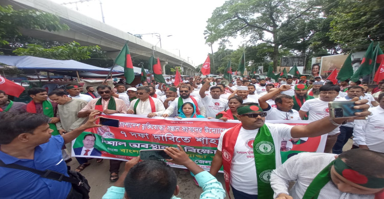 বাংলাদেশ মুক্তিযোদ্ধা সন্তান সংসদ এর উদ্যোগে মুক্তিযোদ্ধা কোটা সহ ৭ দফা দাবিতে রাস্তা অবরোধ