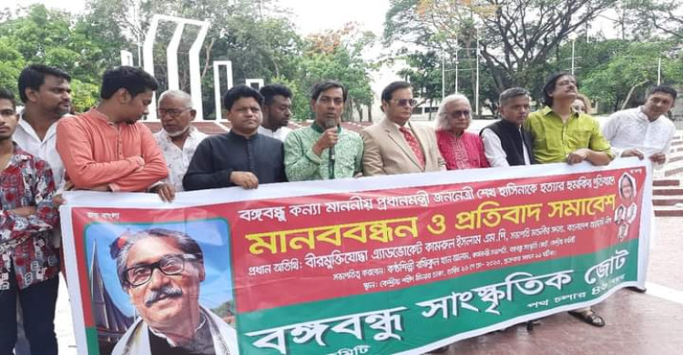 প্রধানমন্ত্রী শেখ হাসিনাকে হত্যার হুমকির প্রতিবাদে বঙ্গবন্ধু সাংস্কৃতিক জোটের প্রতিবাদ সমাবেশ