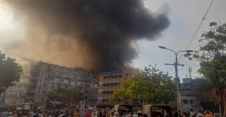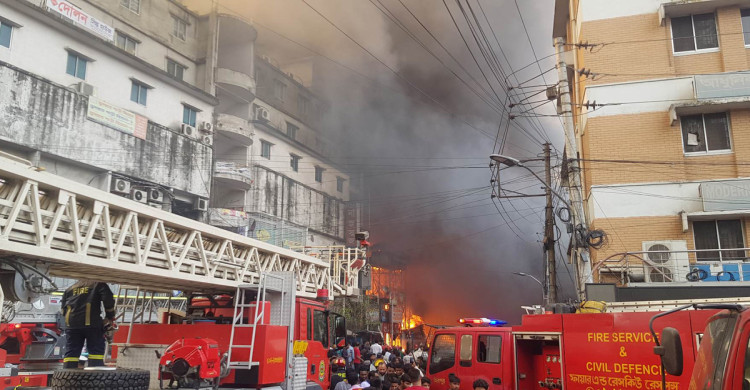 ধোঁয়ার কুণ্ডলীতে ছেঁয়ে গেছে বঙ্গবাজারের আকাশ