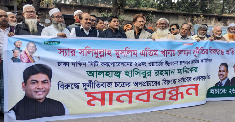 কাউন্সিলর মানিকের বিরুদ্ধে অপপ্রচার বন্ধের দাবিতে এলাকাবাসীর মানববন্ধন