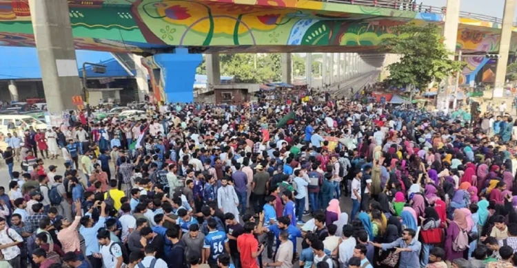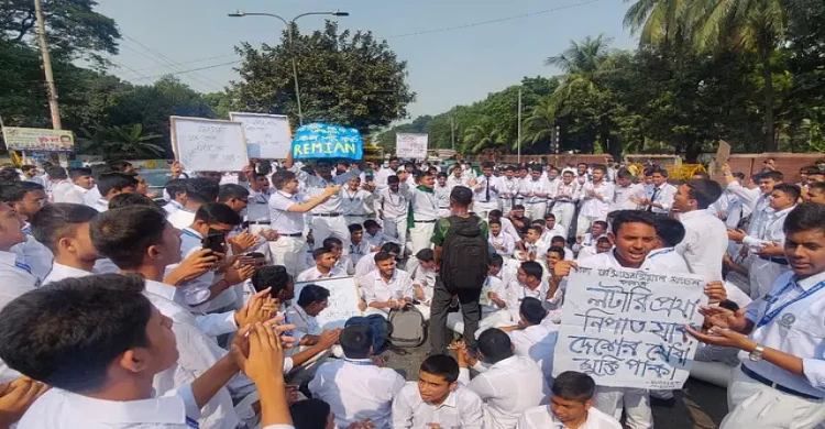 সড়ক অবরোধ করে রেসিডেন্সিয়াল কলেজ শিক্ষার্থীদের বিক্ষোভ