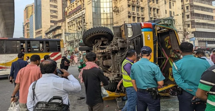 রাজধানীর পল্টনে বাস-ট্রাক সংঘর্ষে নিহত ১