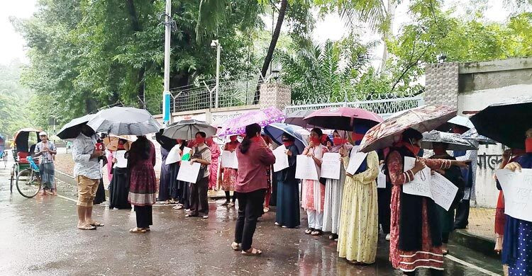 ঢাবিতে বৈধ সিটের দাবিতে বৃষ্টিতে ভিজেই শিক্ষার্থীদের মানববন্ধন