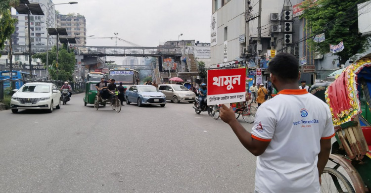 ট্রাফিক পুলিশ সড়কে ফেরায় অভিনন্দন ও ফুল দিয়ে বরণ