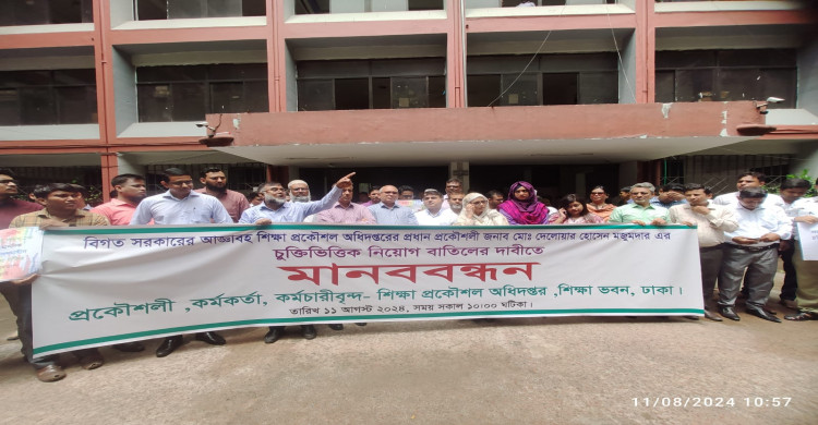 শিক্ষা প্রকৌশলী অধিদপ্তরের প্রধান প্রকৌশলীর চুক্তিভিত্তিক নিয়োগ বাতিলের দাবিতে মানববন্ধন