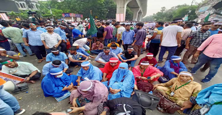 জাতীয়করণের দাবিতে আউটসোর্সিং কর্মীদের শাহবাগ অবরোধ