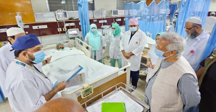 আন্দোলনে আহতদের দেখতে নিউরোসায়েন্সেস হাসপাতালে ড. ইউনূস