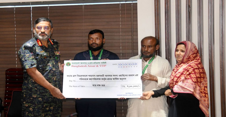 বন্যায় ত্রাণ বিতরণকালে আনসার সদস্যের মৃত্যু, পরিবারকে মহাপরিচালকের আর্থিক সহায়তা প্রদান