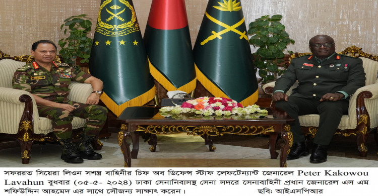 সেনাবাহিনী প্রধানের সাথে সিয়েরা লিওন সশস্ত্র বাহিনীর চিফ অব ডিফেন্স স্টাফ এর সৌজন্য সাক্ষাৎ