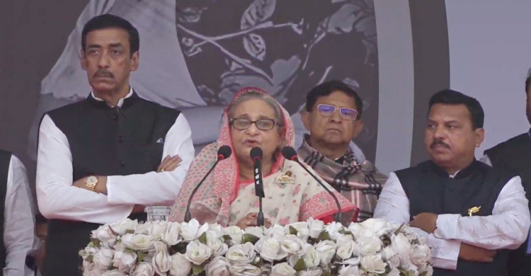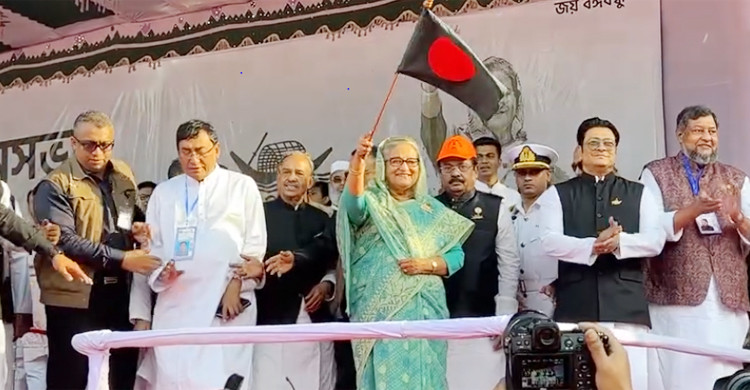 কলাবাগান মাঠে জনসভায় যোগ দিয়েছেন শেখ হাসিনা
