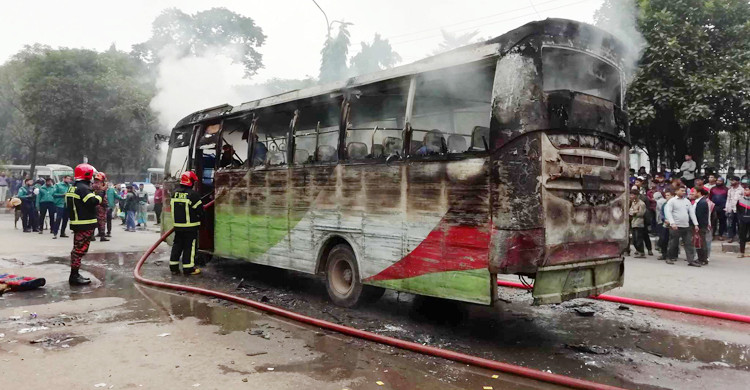 অবরোধ কর্মসূচি ২৪ ঘণ্টায় ৬ বাস, ১ প্রাইভেটকারে আগুন