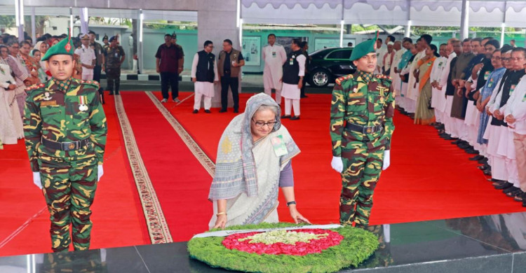৬ দফা দিবসে বঙ্গবন্ধুর প্রতিকৃতিতে প্রধানমন্ত্রীর শ্রদ্ধা