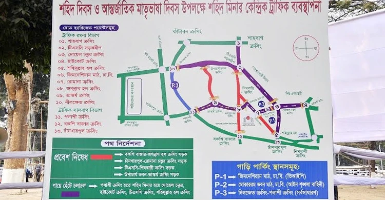২১ ফেব্রুয়ারি ঢাকার যেসব সড়ক বন্ধ থাকবে