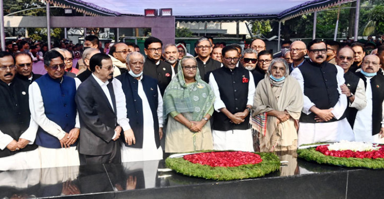 বঙ্গবন্ধুর প্রতিকৃতিতে আ.লীগের নব নির্বাচিত কমিটির শ্রদ্ধা
