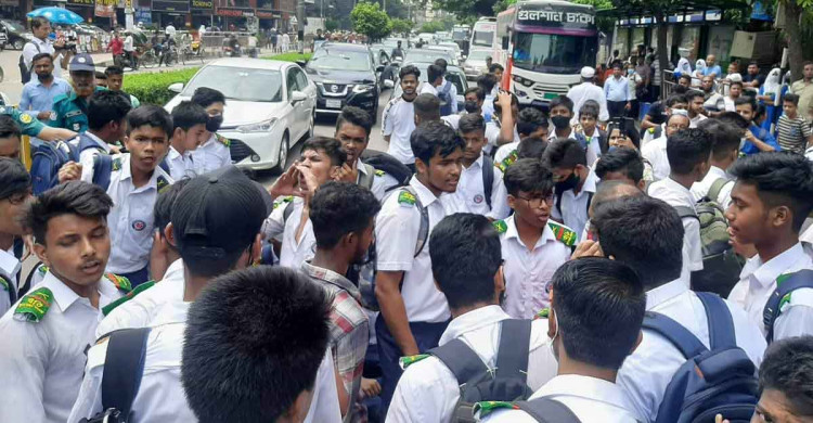 হাফ ভাড়া দাবিতে বনানীর সড়কে শিক্ষার্থীরা