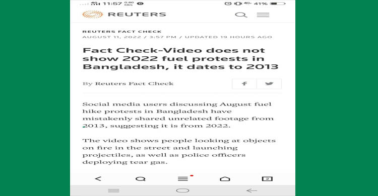 দেশবিরোধী মিথ্যা অপপ্রচার চিহ্নিত করলো রয়টার্স