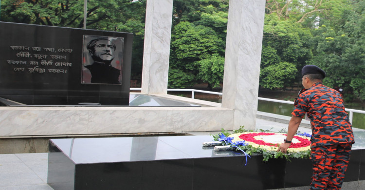 জাতির পিতার প্রতিকৃতিতে ফায়ার সার্ভিসের ডিজির বিনম্র শ্রদ্ধা নিবেদন