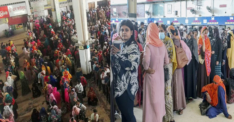 ঈদযাত্রা : টিকিটের লাইনে ভোগান্তিতে নারীরা
