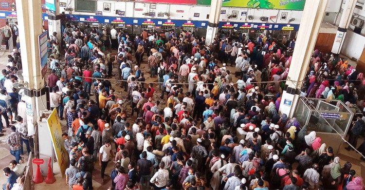 ট্রেনে ঈদযাত্রা : সহজে কঠিন, কাউন্টারে দশগুণ চাপ