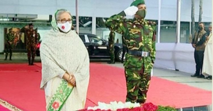 বঙ্গবন্ধুর প্রতিকৃতিতে প্রধানমন্ত্রীর শ্রদ্ধা নিবেদন