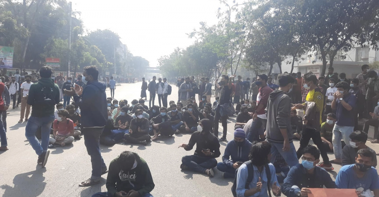 করোনাকালে পরীক্ষার নীতিমালার দাবিতে রাস্তায় বুটেক্স শিক্ষার্থীরা