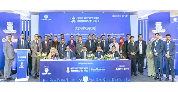 বাংলাদেশে ব্যাংকের ‘গ্রাহক সচেতনতা সপ্তাহ–২০২৫’ এর উদ্বোধনী অনুষ্ঠান আয়োজন করলো প্রাইম ব্যাংক