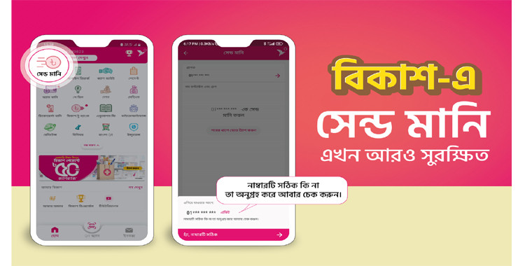 বিকাশ অ্যাপে ‘সেন্ড মানি’ এখন আরও সুরক্ষিত, নির্ভুল