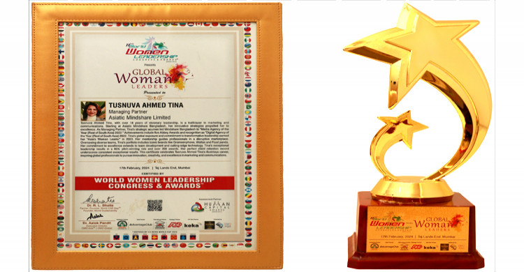 তাসনুভা আহমেদ টিনা পেলেন গ্লোবাল ওম্যান লিডার খেতাব