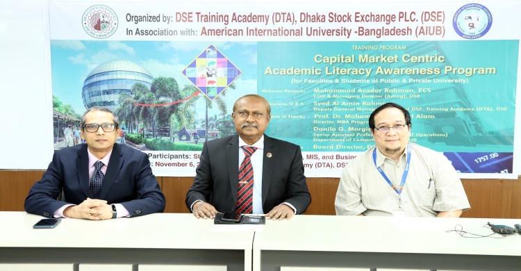 আমেরিকান ইন্টারন্যাশনাল ইউনিভার্সিটি বাংলাদেশ (এআইইউবি)-এর শিক্ষার্থীদের নিয়ে ডিএসইতে প্রশিক্ষণ কর্মশালা অনুষ্ঠিত