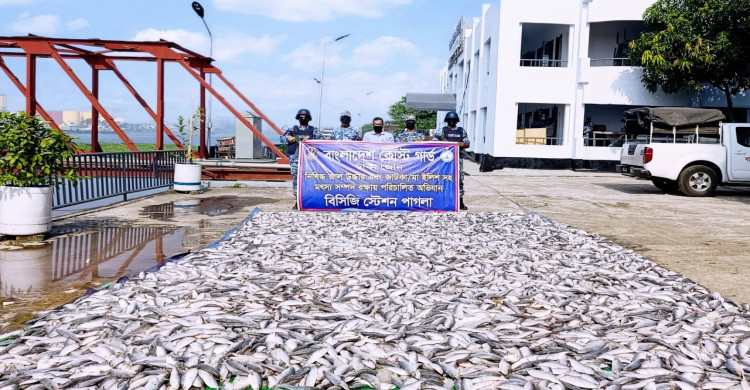নারায়ণগঞ্জে প্রায় ১৪ লক্ষ টাকা মূল্যের ২ হাজার কেজি জাটকা জব্দ করেছে কোস্ট গার্ড