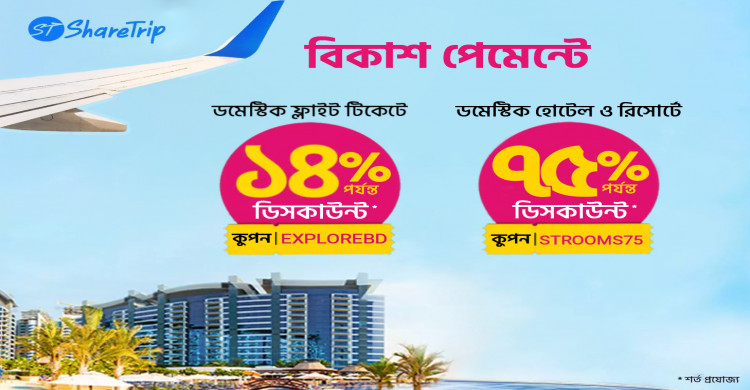 শেয়ার ট্রিপে হোটেল-বিমান টিকেট বুকিংয়ে বিকাশ পেমেন্টে আকর্ষণীয় ডিসকাউন্ট