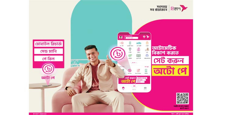 বিকাশ অটো পে-তে মিস হবেনা সেন্ড মানি, মোবাইল রিচার্জ, ইউটিলিটি বিল কিংবা ইনস্যুরেন্সের প্রিমিয়াম দেওয়া