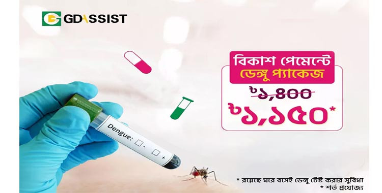 ডেঙ্গু টেস্টে বিকাশ পেমেন্টে ২৫০ টাকা ছাড় জিডি অ্যাসিস্ট-এ
