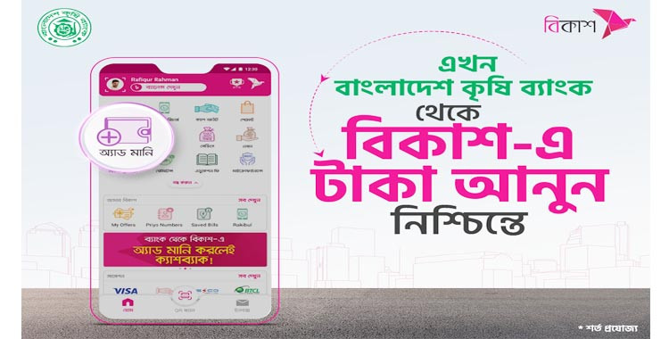 এখন থেকে কৃষি ব্যাংকের গ্রাহকরাও ‘অ্যাড মানি’ করতে পারবেন বিকাশ-এ