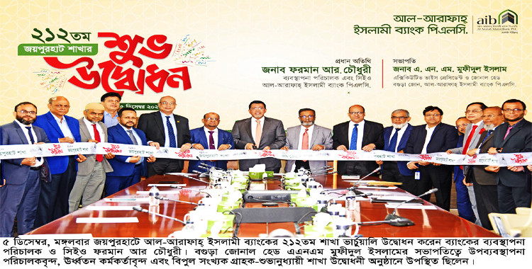 জয়পুরহাটে আল-আরাফাহ্ ইসলামী ব্যাংকের ২১২তম শাখার শুভ উদ্বোধন