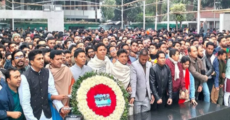 বঙ্গবন্ধুর প্রতিকৃতিতে ছাত্রলীগের শ্রদ্ধা