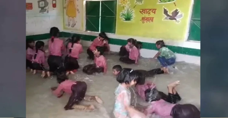 গরমে স্কুলের শ্রেণিকক্ষ হয়ে গেল ‘সুইমিং পুল’