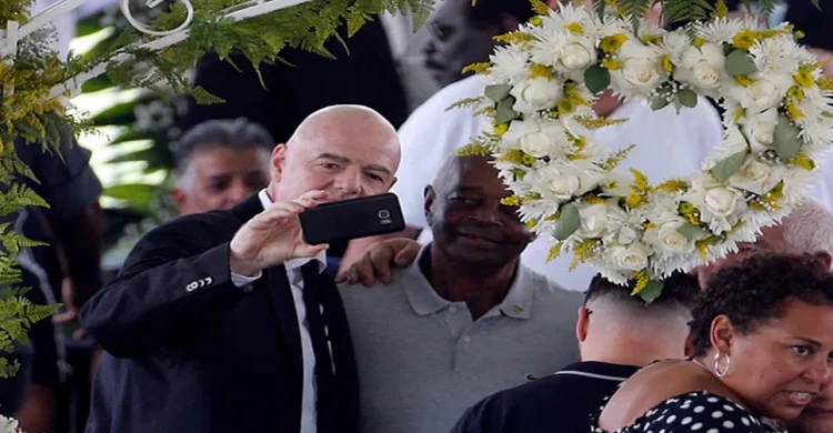 পেলের কফিনের সাথে সেলফি, সমালোচনায় ফিফা সভাপতি