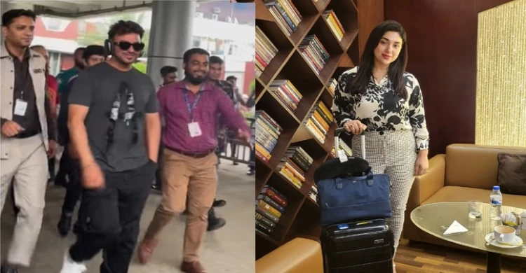 শাকিবের আগমনে বিমানবন্দরে অপু বিশ্বাস