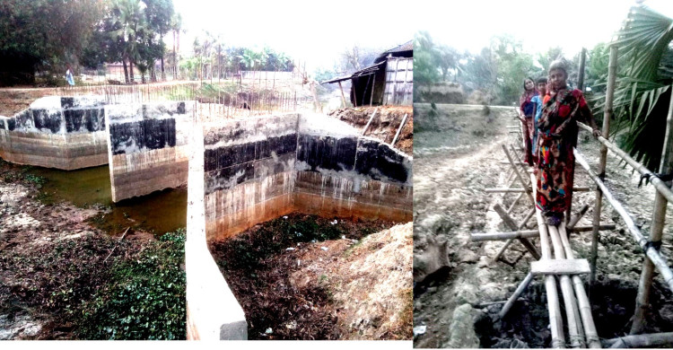 শ্যামনগর শীলতলা খালের উপর নির্মানাধীন ব্রীজের কাজ বন্ধ থাকায় হতাশ এলাকাবাসী