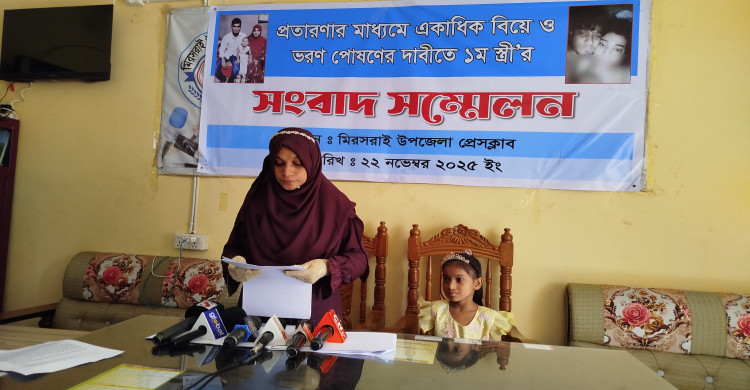 মিরসরাইয়ে স্ত্রী সন্তানের ভরণপোষণ দেয়ার দাবিতে সংবাদ সম্মেলন
