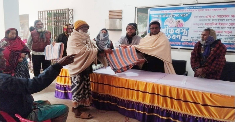 তানোরে অসহায় প্রতিবন্ধীদের মাঝে শীতবস্ত্র বিতরণ