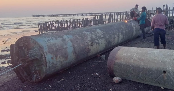 সীতাকুণ্ডে নদীতে ভেসে আসা ৫০ ফুট লোহার পাইপ কেটে নিচ্ছে স্থানীয়রা
