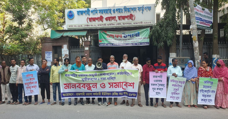 এক দফা দাবীতে রাজশাহী ওয়াসা কর্মচারীদের মানববন্ধন