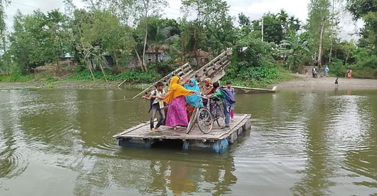 উদ্বোধনের দুই মাস যেতে না যেতেই ভেঙ্গে পড়ে ব্রীজ ঝুঁকি নিয়ে ড্রামের ভেলায় পারাপার