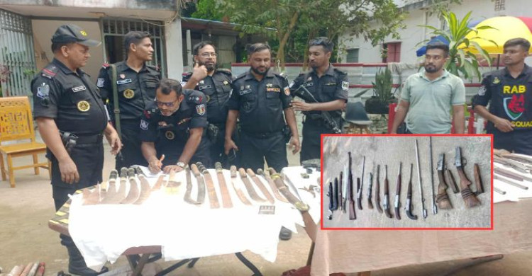 চট্টগ্রাম রাউজানে র্যাবের অভিযানে বিপুল পরিমাণ অস্ত্র ও গোলাবারুদ উদ্ধার